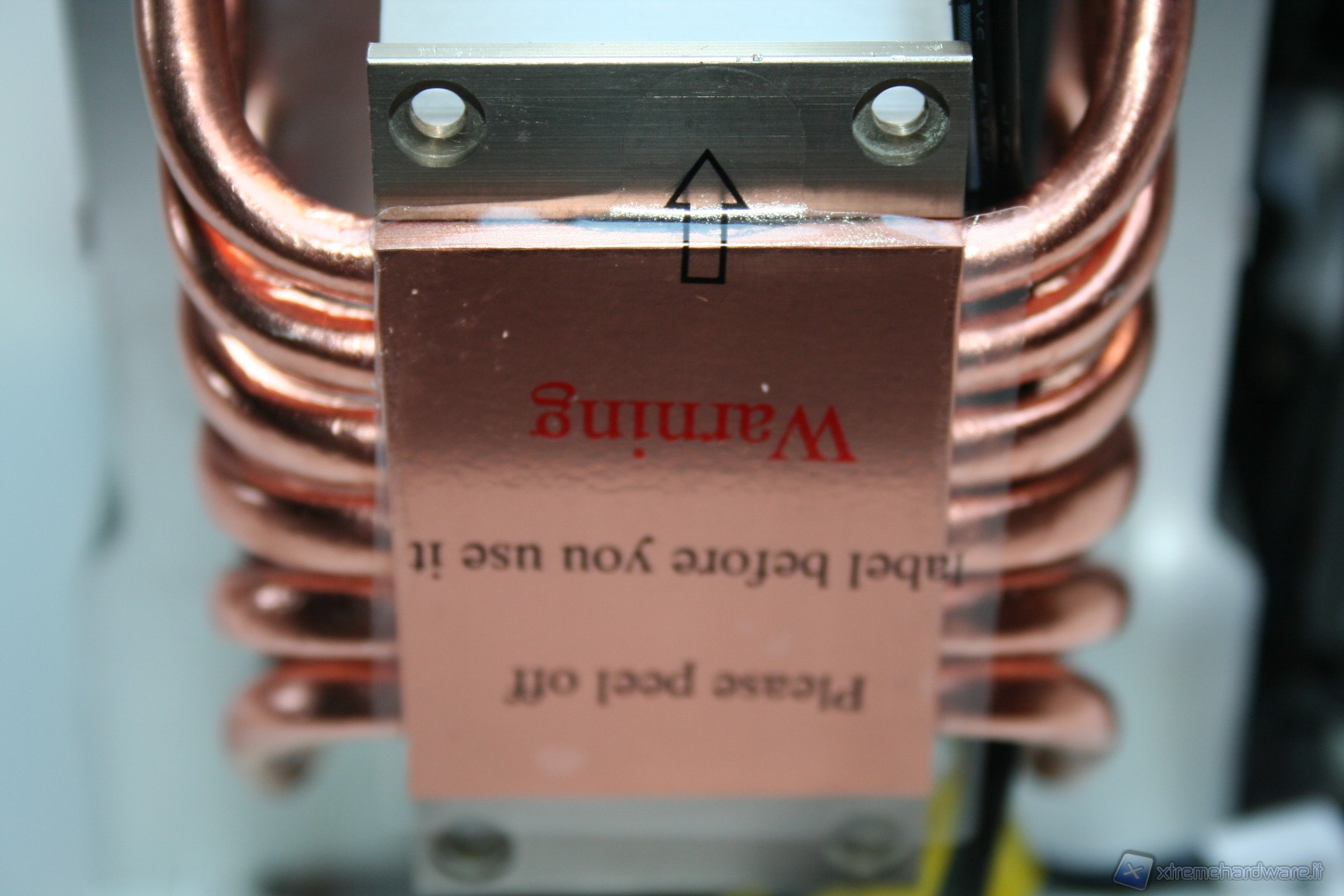 Cosa possiamo aspettarci da questo dissipatore? Indubbiamente, date le generose dimensioni non possiamo fare altro che pretendere un risultato complessivo di buon livello. Data anche la solidità strutturale, la conformazione classica rivisitata con nuovi accorgimenti, le finiture ed il buon assemblaggio, sicuramente sarà molto difficile non rimanere soddisfatti. Iniziando l’analisi dall’alto, Cooler Master ha installato una nuova placca superiore, che riporta il logo caratteristico dell’omonima casa costruttrice. La finitura è eccellente, come del resto la lavorazione finale delle heatpipe nella parte superiore. Heat-pipe e base sono in rame a vista, senza quindi trattamento di nickelatura, che solitamente protegge da ossidazioni e alterazioni del colore.