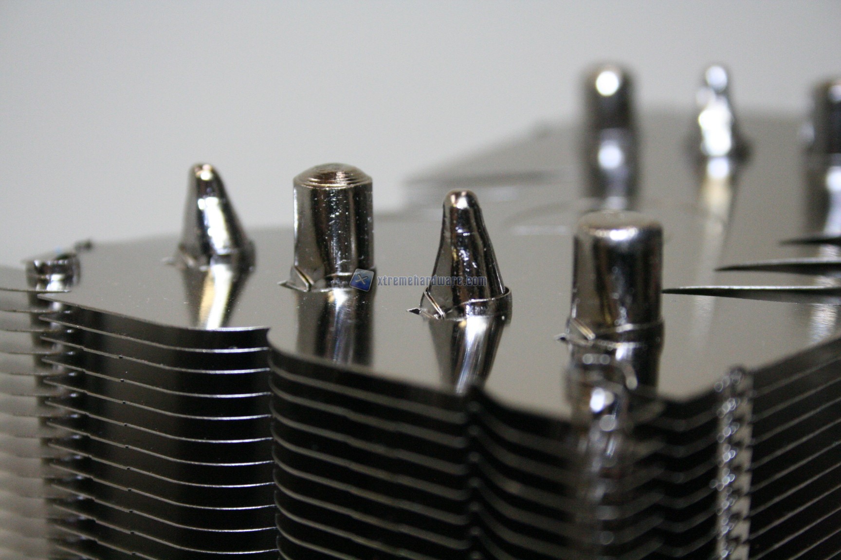 La scudatura finale delle heatpipes è egualmente valida e presenta una configurazione stock Push, anche se purtroppo non è possibile aggiungerne una seconda posteriormente, per via dell’assenza dei fermi nel bundle, similmente al Themis. E’ un modello orientato a gestire una CPU con frequenze medio-alte, con overclock moderati qualora si volesse mantenere una buona silenziosità, ma anche overclock elevati accontentandosi di una soluzione più rumorosa. La superficie dissipante comincia ad essere importante e quindi non ci saranno problemi per la gestione di CPU potenti, con TDP nell’ordine dei 130/160W.