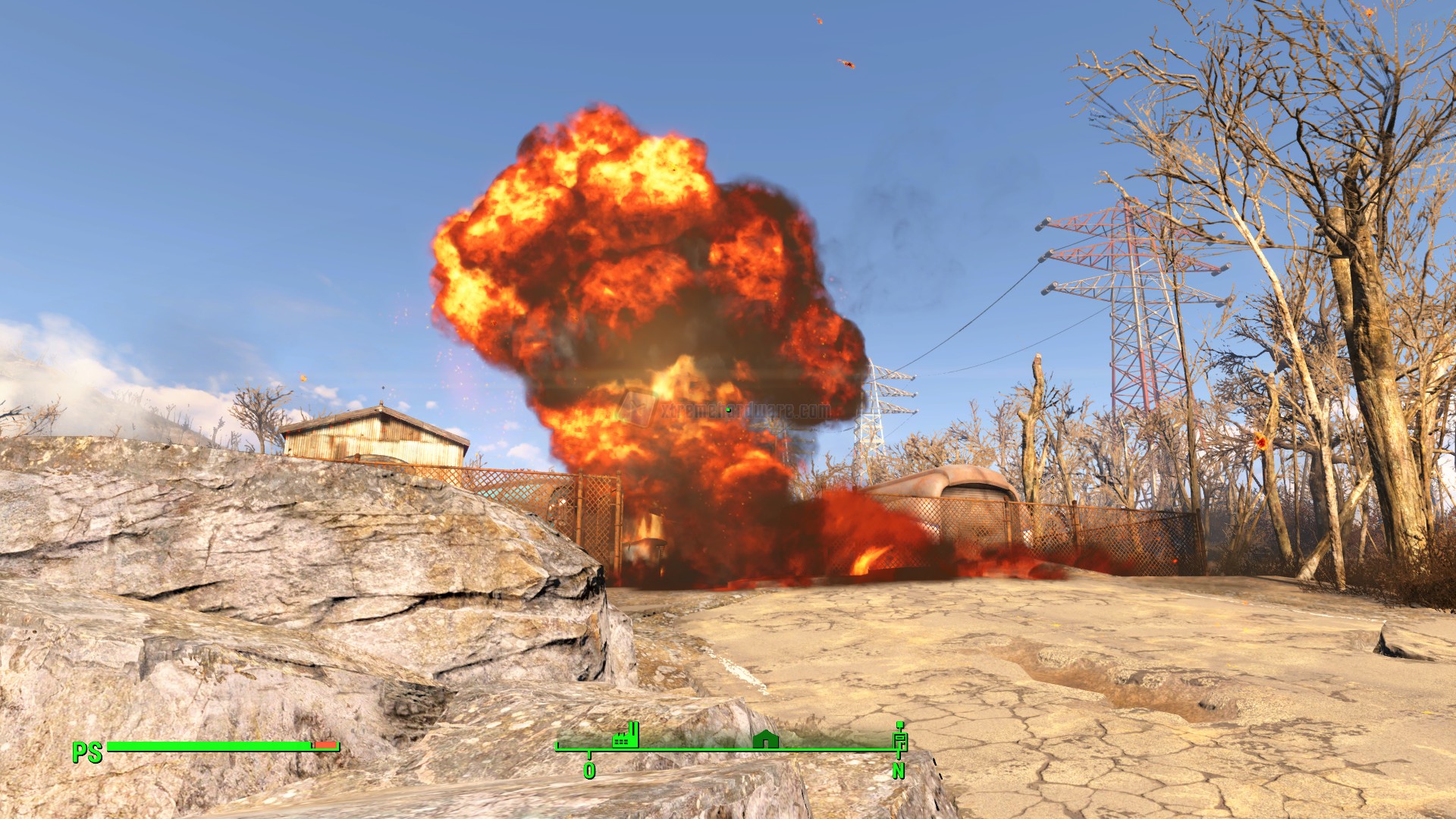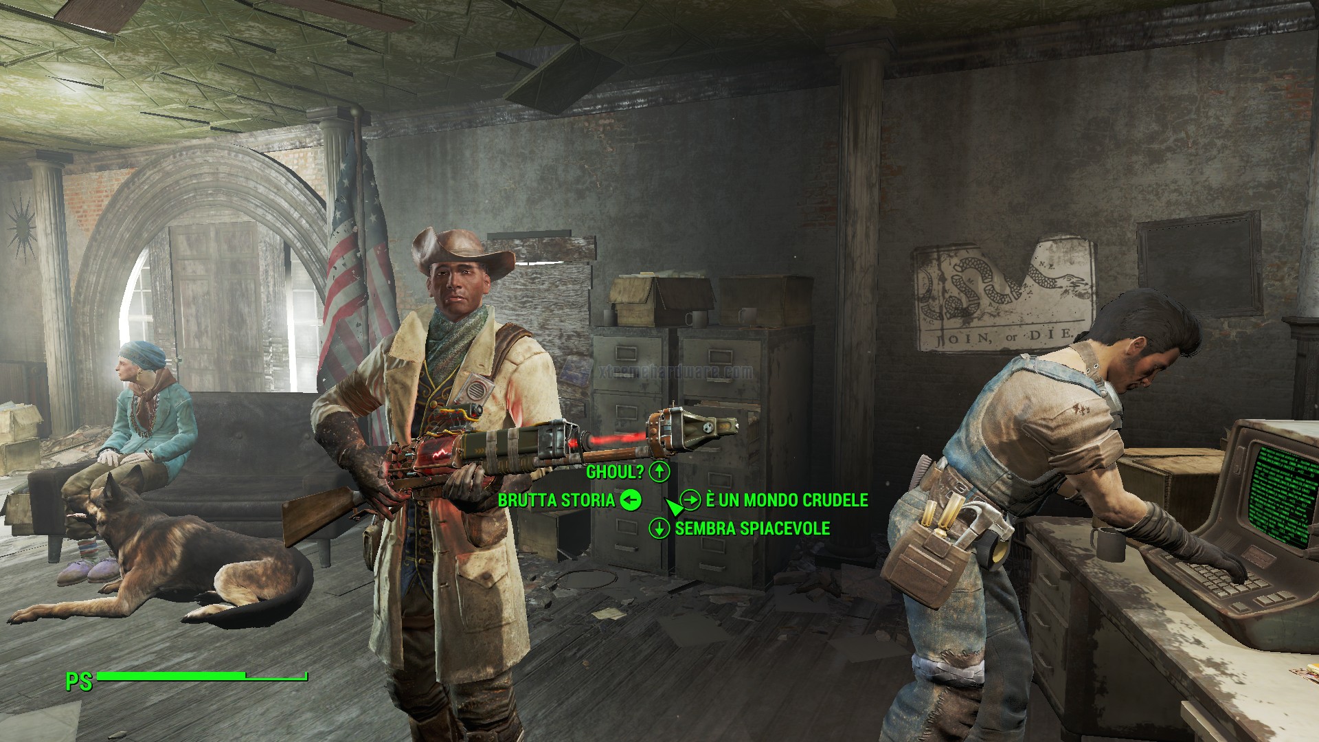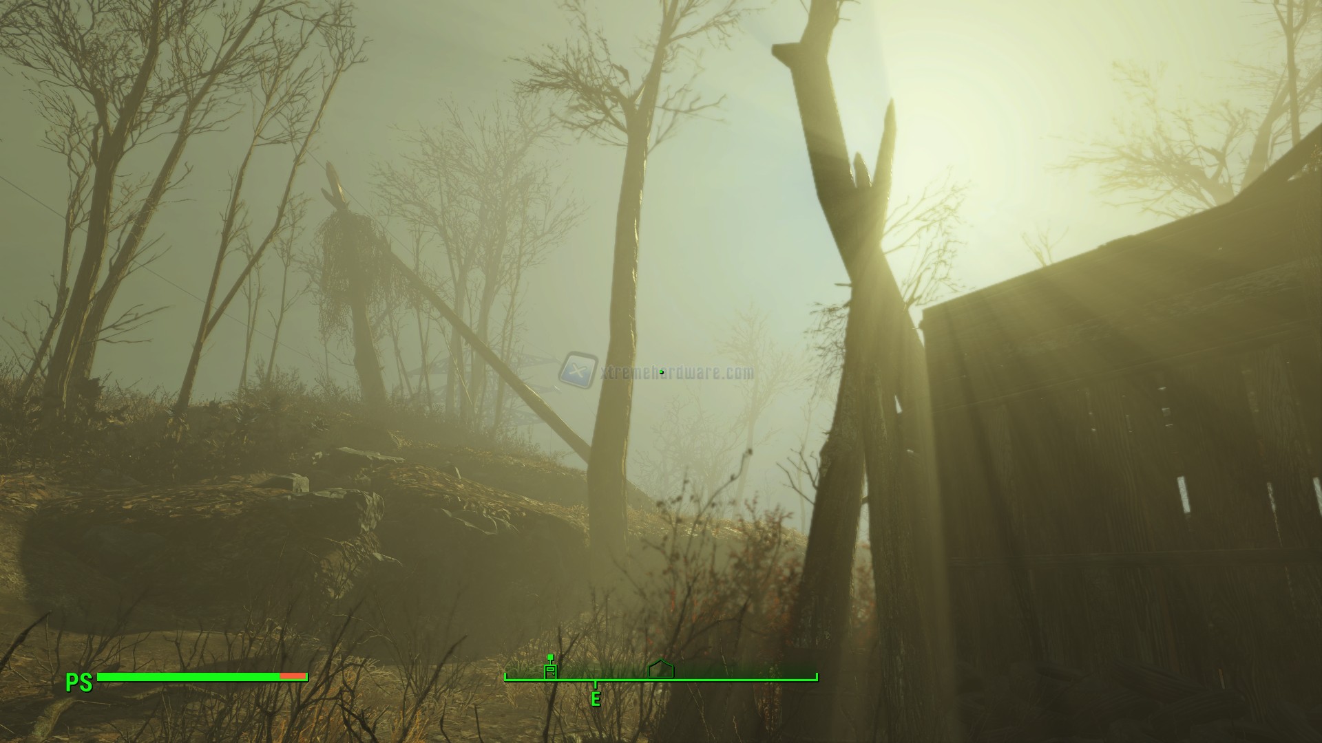 L’acqua è resa discretamente, anche se forse in questo caso era migliore sul predecessore, ma è un aspetto ininfluente poiché saranno presenti molte mod in tal senso. Diversamente da Skyrim però si nota l’assenza di uno degli aspetti predominanti del titolo precedente: il vento. Era uno degli elementi di forza del titolo fantastico Bethesda, ma ovviamente in questo caso il contesto è totalmente differente, e bisogna quindi passare dalle meravigliose pianure di montagna e picchi innevati, all’olocauso termonucleare, con tutto ciò che ne consegue.