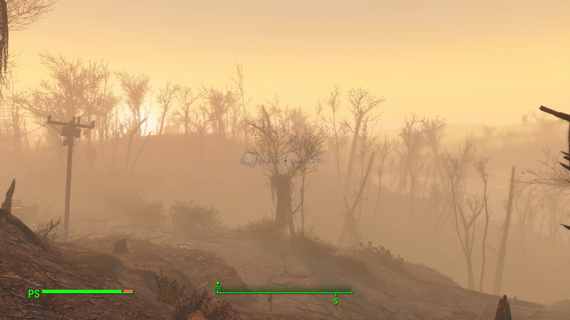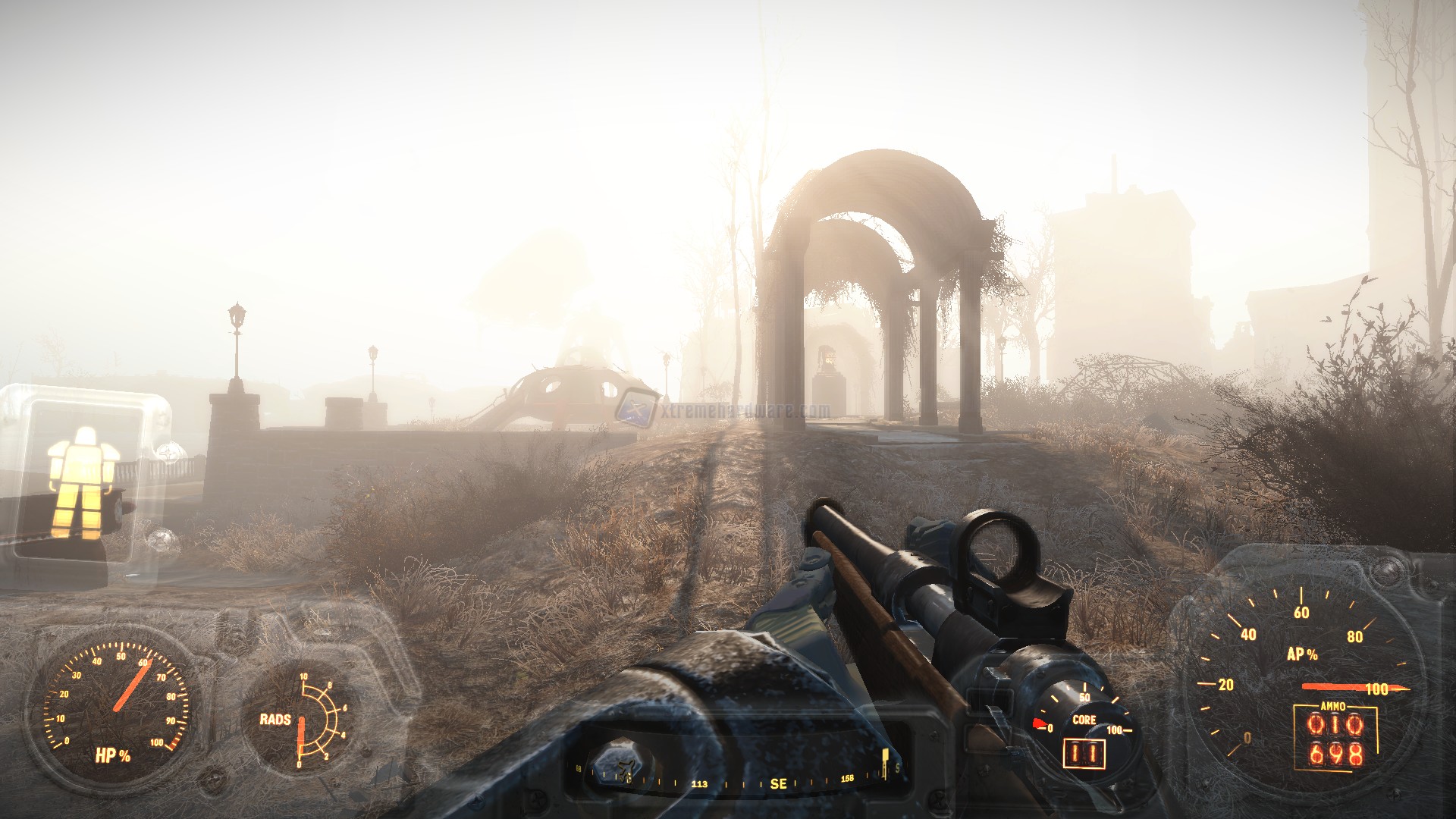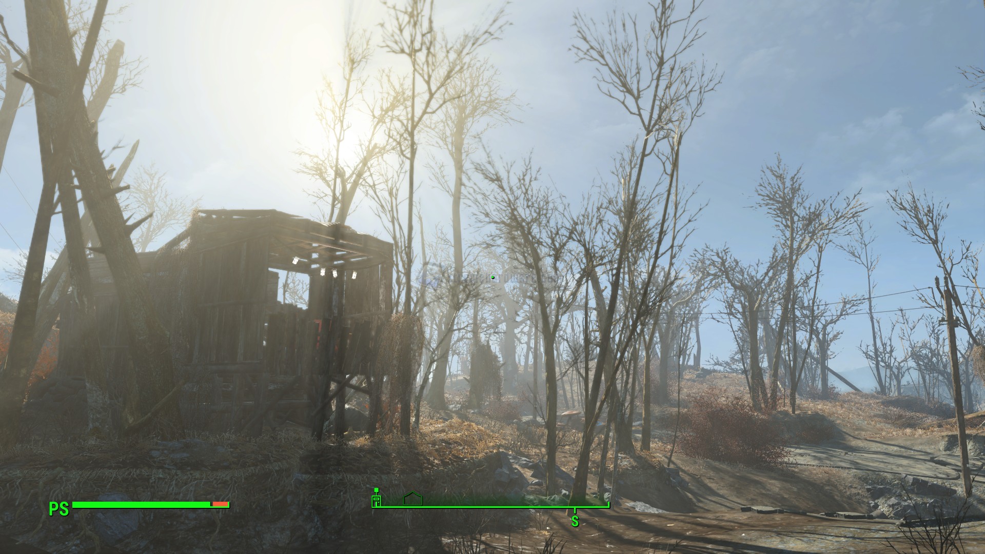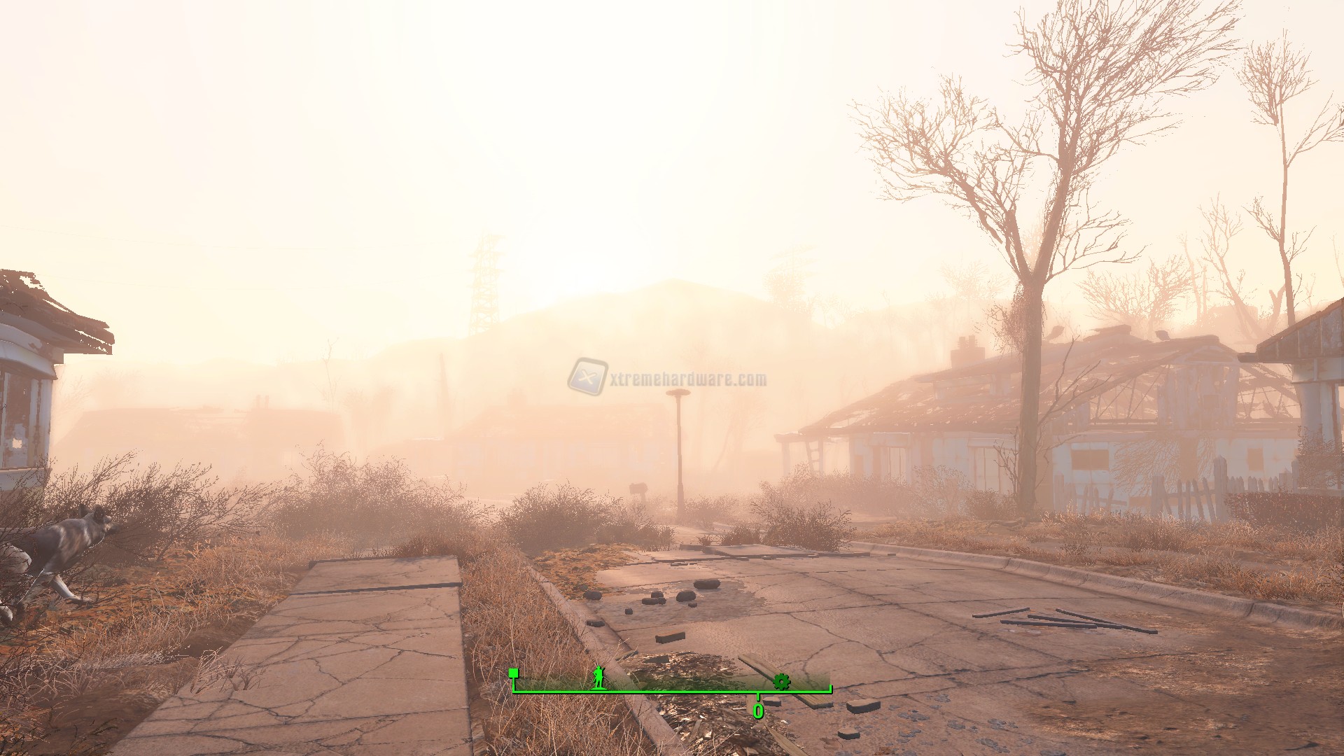 Gli effetti atmosferici sono, in certi casi, meravigliosi. Si nota in particolar modo un rendering quasi perfetto in corrispondenza della zona sud-occidentale della mappa, ovvero dove è caduta la testata termonucleare, il cosiddetto “mare splendente”. La pioggia radioattiva, il sole brillante, i fulmini radioattivi, la nebbia, gli effetti del tramonto e dell’alba, rendono il tutto semplicemente immersivo e davvero appagante. Certamente, sono presenti dei notevoli bug, ma è possibile che ciò dipenda soprattutto dalla risoluzione utilizzata; non ci è stato possibile fornire dettagli a 4K ma in questo caso sicuramente tutto ciò sarebbe messo da parte, e totalmente diverso (prestazioni permettendo, con una scheda grafica di ultimissima generazione, top di gamma). Similmente a Skyrim, che utilizzò il motore grafico “GameBryo 2.0”, Fallout 4 ovviamente doveva essere compatibile con le console di presente e passata generazione, ragione per cui probabilmente parte delle problematiche in materia di texture ed AA sono dipese da questa scelta; un motore che sia compatibile con le console implica quindi texture di bassa qualità, streming continuo, Level Of Detail (L.O.D.) fortemente scalabile e generalmente molto basso, assieme ad una generale complessità poligonale molto limitata, e librerie grafiche ormai vetuste. Bene, in realtà Fallout 4 alterna certamente problematiche del genere, a complessità poligonale discreta, ma effetti grafici di indubbio spessore e bellezza, soprattutto in materia di design e ambientazione: