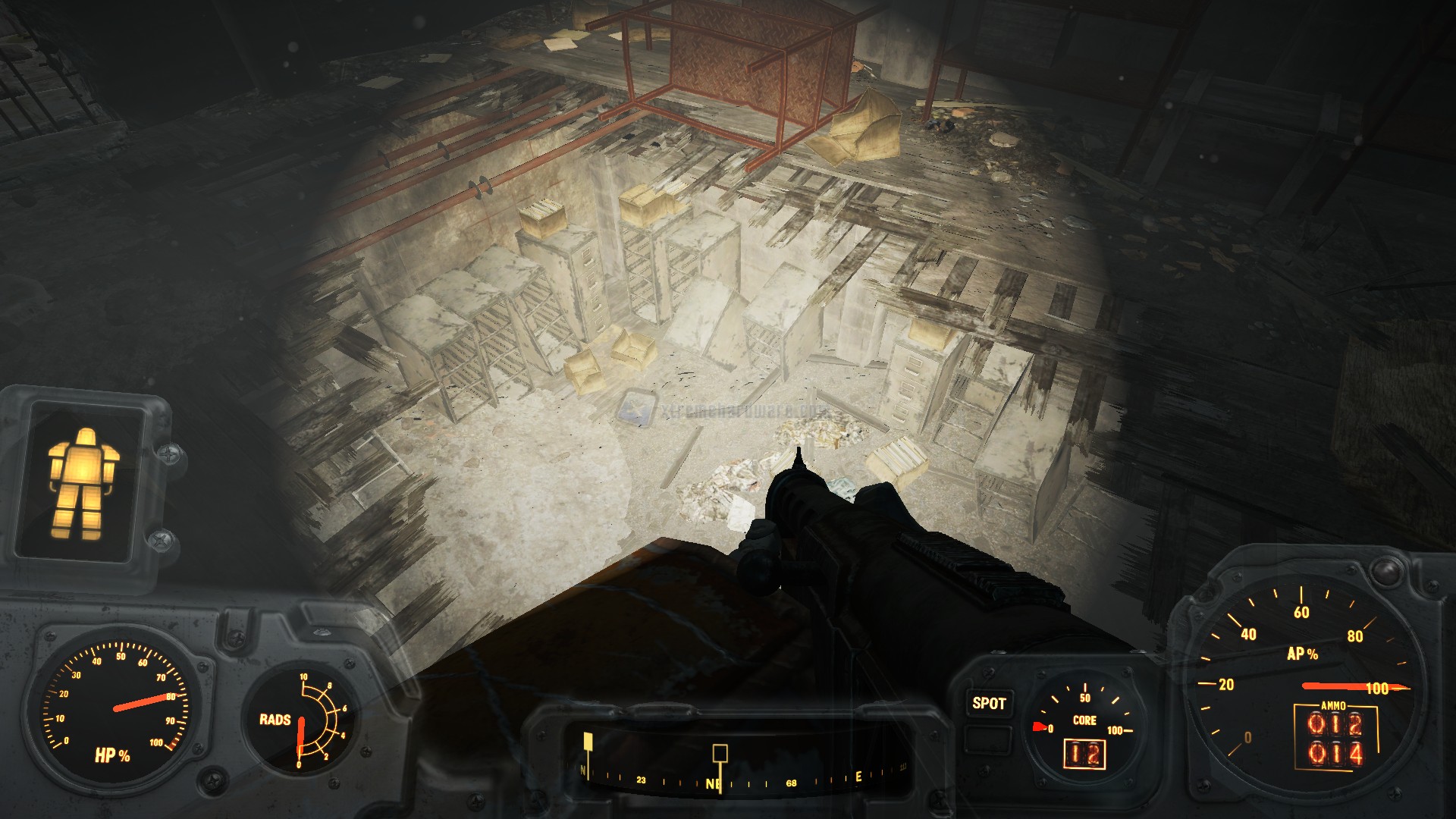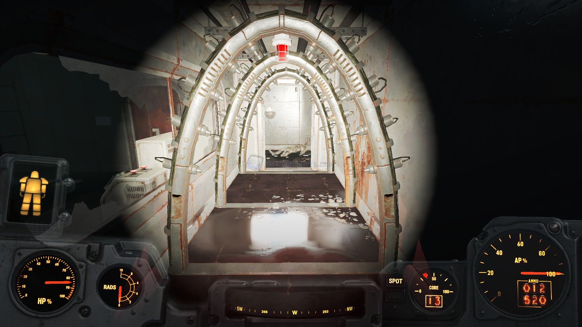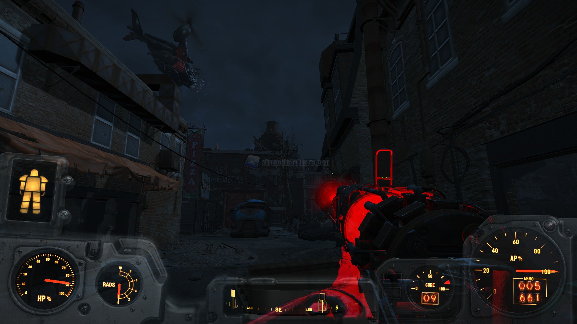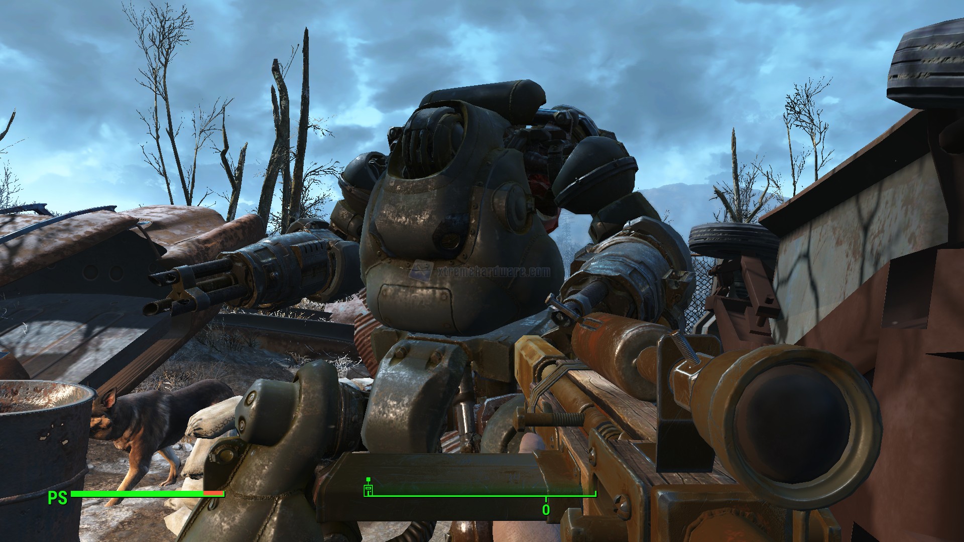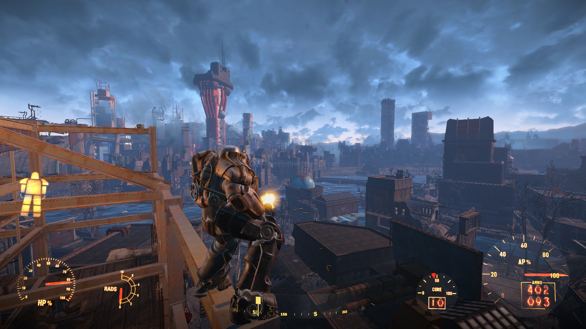 Gli effetti atmosferici sono, in certi casi, meravigliosi. Si nota in particolar modo un rendering quasi perfetto in corrispondenza della zona sud-occidentale della mappa, ovvero dove è caduta la testata termonucleare, il cosiddetto “mare splendente”. La pioggia radioattiva, il sole brillante, i fulmini radioattivi, la nebbia, gli effetti del tramonto e dell’alba, rendono il tutto semplicemente immersivo e davvero appagante. Certamente, sono presenti dei notevoli bug, ma è possibile che ciò dipenda soprattutto dalla risoluzione utilizzata; non ci è stato possibile fornire dettagli a 4K ma in questo caso sicuramente tutto ciò sarebbe messo da parte, e totalmente diverso (prestazioni permettendo, con una scheda grafica di ultimissima generazione, top di gamma). Similmente a Skyrim, che utilizzò il motore grafico “GameBryo 2.0”, Fallout 4 ovviamente doveva essere compatibile con le console di presente e passata generazione, ragione per cui probabilmente parte delle problematiche in materia di texture ed AA sono dipese da questa scelta; un motore che sia compatibile con le console implica quindi texture di bassa qualità, streming continuo, Level Of Detail (L.O.D.) fortemente scalabile e generalmente molto basso, assieme ad una generale complessità poligonale molto limitata, e librerie grafiche ormai vetuste. Bene, in realtà Fallout 4 alterna certamente problematiche del genere, a complessità poligonale discreta, ma effetti grafici di indubbio spessore e bellezza, soprattutto in materia di design e ambientazione: