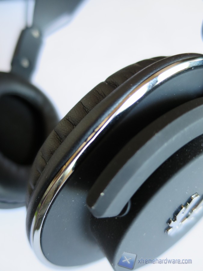Nella parte destra e sinistra troviamo applicato sulla plastica il logo dell’azienda in colorazione argento che stacca ulteriormente su questo modello di colore nero. Anche i padiglioni sono rifiniti ottimamente da una superfice in gomma soft touch che ci permetterà di utilizzare le cuffie per lungo tempo senza problemi. La parte esterna in plastica dei driver presenta una circonferenza in argento rendendo le Flo un headset elegante e vistoso. Inoltre nel lato sinistro delle cuffie troviamo gli ingressi con relativi simboli per il microfono di tipo flessibile e quello per il collegamento al PC o allo smartphone.