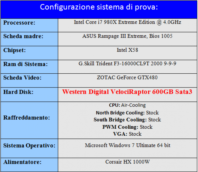 Il nuovo VelociRaptor è stato testato sia in Serial ATA 2 su Intel ICH10R, che in Serial ATA 3, affidandone la gestione al controller Marvel 9128 di cui la scheda madre è dotata. Nei grafici troverete quindi entrambi i risultati ottenuti.